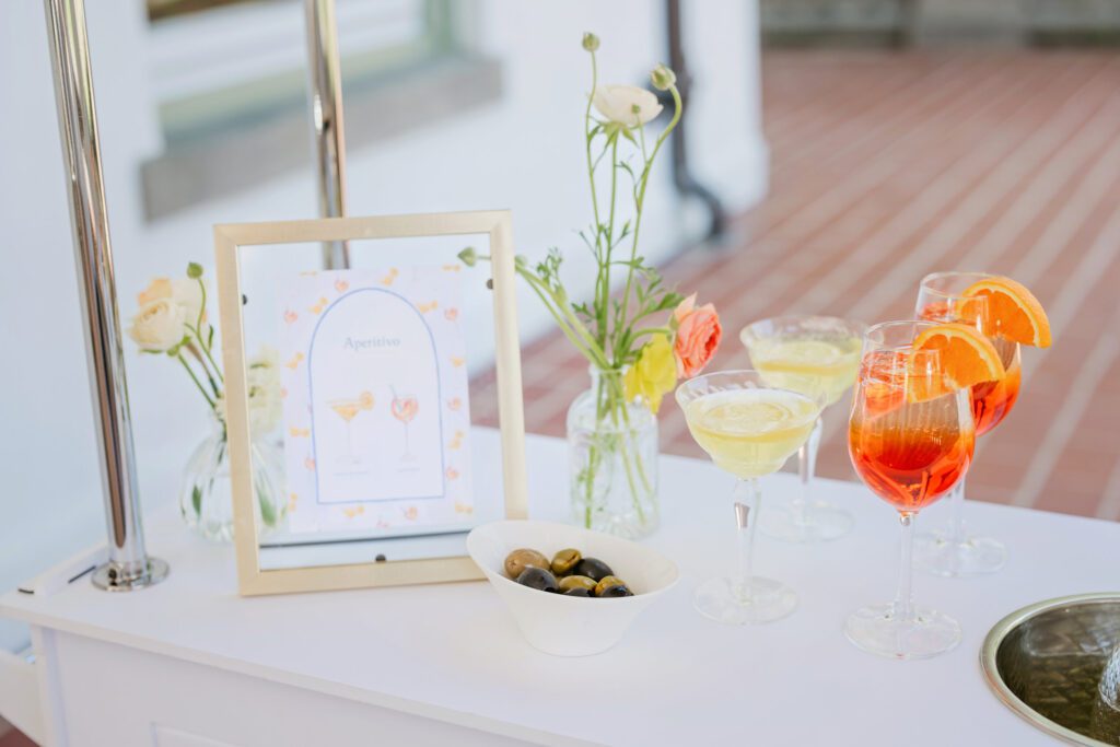 And of course, you can’t have a wedding without a reception! Following a charming cocktail hour on the patio, the reception was hosted in the music room of the Hill House. The table scapes tied together elements of Italy and a color scheme consistent with the florals.