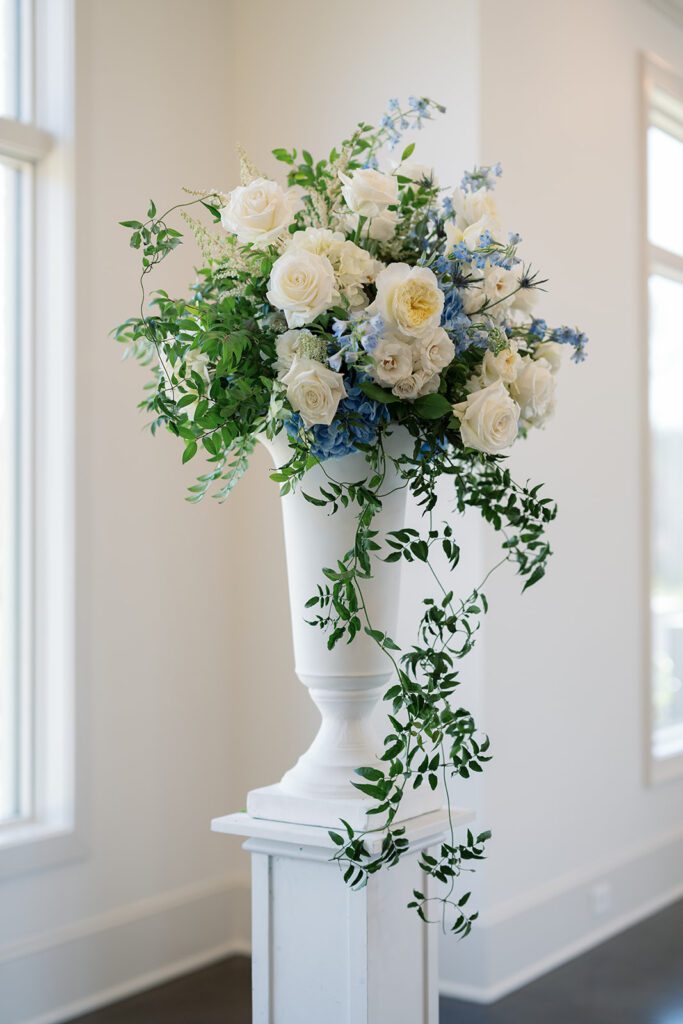 Every part of this blue and white wedding was designed to feel intentional and meaningful. From the color story to the table settings, no detail was overlooked. Brandi and Brett wanted a wedding that felt elegant without being overly formal—and that’s exactly what we created together.