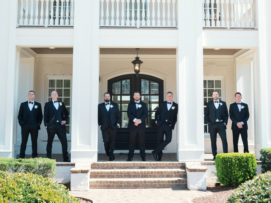 The ceremony took place outdoors on the manicured lawn of Donovan Manor. Surrounded by loved ones, Brandi and Brett exchanged vows under a canopy of soft blooms. Heritage created stunning floral arrangements filled with white flowers and hints of blue, which added subtle color without overpowering the natural beauty of the venue.