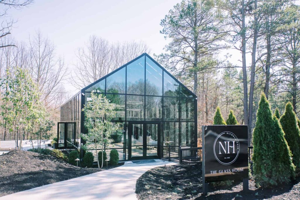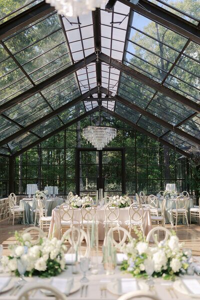 As a team of wedding planners serving the Southeast, we have been loving the latest trend of greenhouse, glasshouse, and glass atrium wedding venues. Glass atrium and greenhouse venues in the Southeast offer the perfect blend of nature, detailed architectural, and natural light that makes for a great photo every time. And we can’t forget our favorite part – climate control! It’s no secret that weddings here in the South can get a little ~sweaty~. Now, we don’t have to sacrifice the natural beauty of our region for our guests’ comfort!